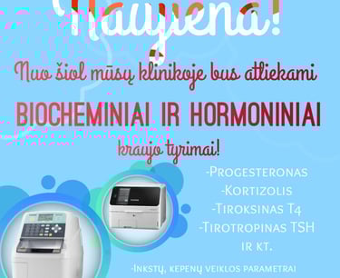 Taip pat bendradarbiaujame su Laboklin laboratorija Vokietijoje, todėl galime atlikti labai plataus spektro kraujo, išmatų, odos, navikų, DNR ir kitus tyrimus.